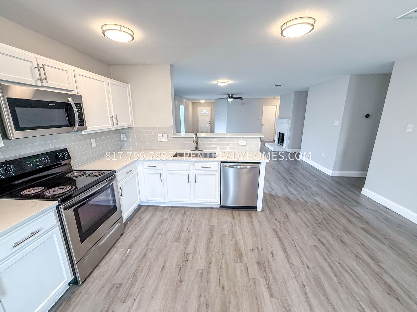 This spacious 3-bedroom, 2-bathroom home offers both comfort and functionality in a desirable Fort Worth location. The open-concept living area features updated flooring, neutral tones, and a cozy fireplace, creating a warm and inviting atmosphere. The modern kitchen is equipped with stainless steel appliances, including a refrigerator, stove, dishwasher, and microwave, making it move-in ready. Large bedrooms provide plenty of natural light and closet space, while the updated bathrooms showcase sleek tile finishes.